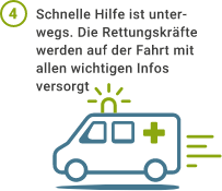 ohne dass diese aktiv werden muss. - Rettungskräfte werden zeitnah mit allen wichtigen Daten zur Person informiert, sodass eine schnelle und zielgerichtete örtliche Versorgung gewährleistet ist.